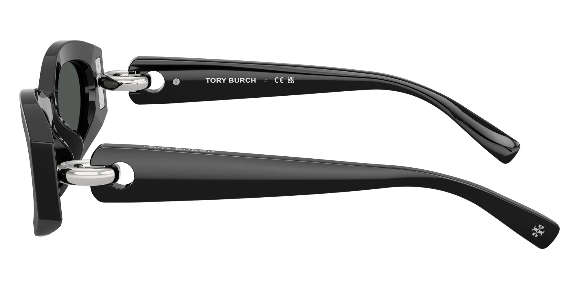 Black (170987) Sunglasses with Dark Gray lenses (TY7222U 170987 52) by Tory Burch™. Size: 52-20-135, Shape: Oval, Material: Acetate.