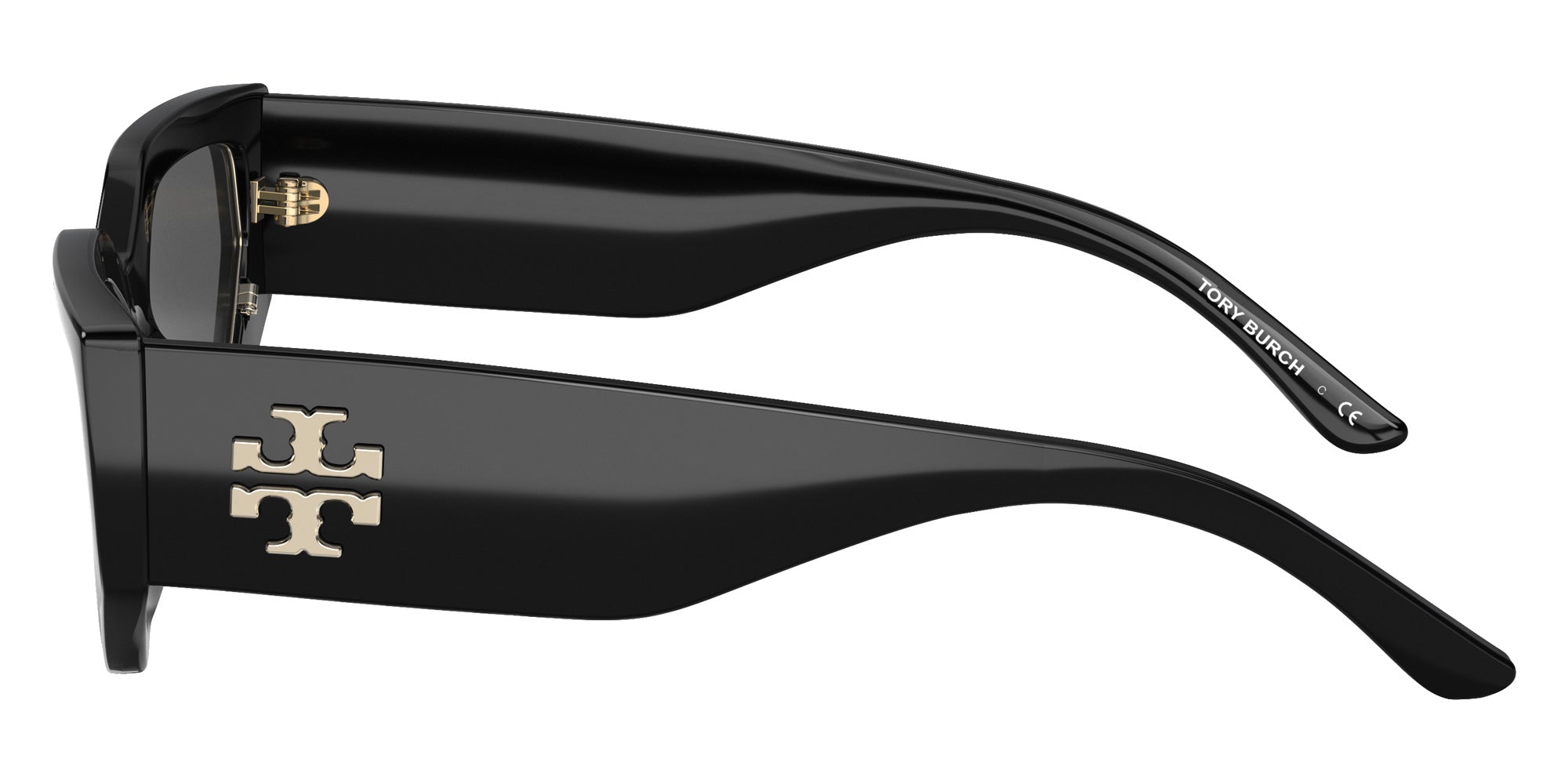 Black (179187) Sunglasses (TY9070U 179187 55) by Tory Burch. Size: 55-15-140, Shape: Irregular, Material: Injected.