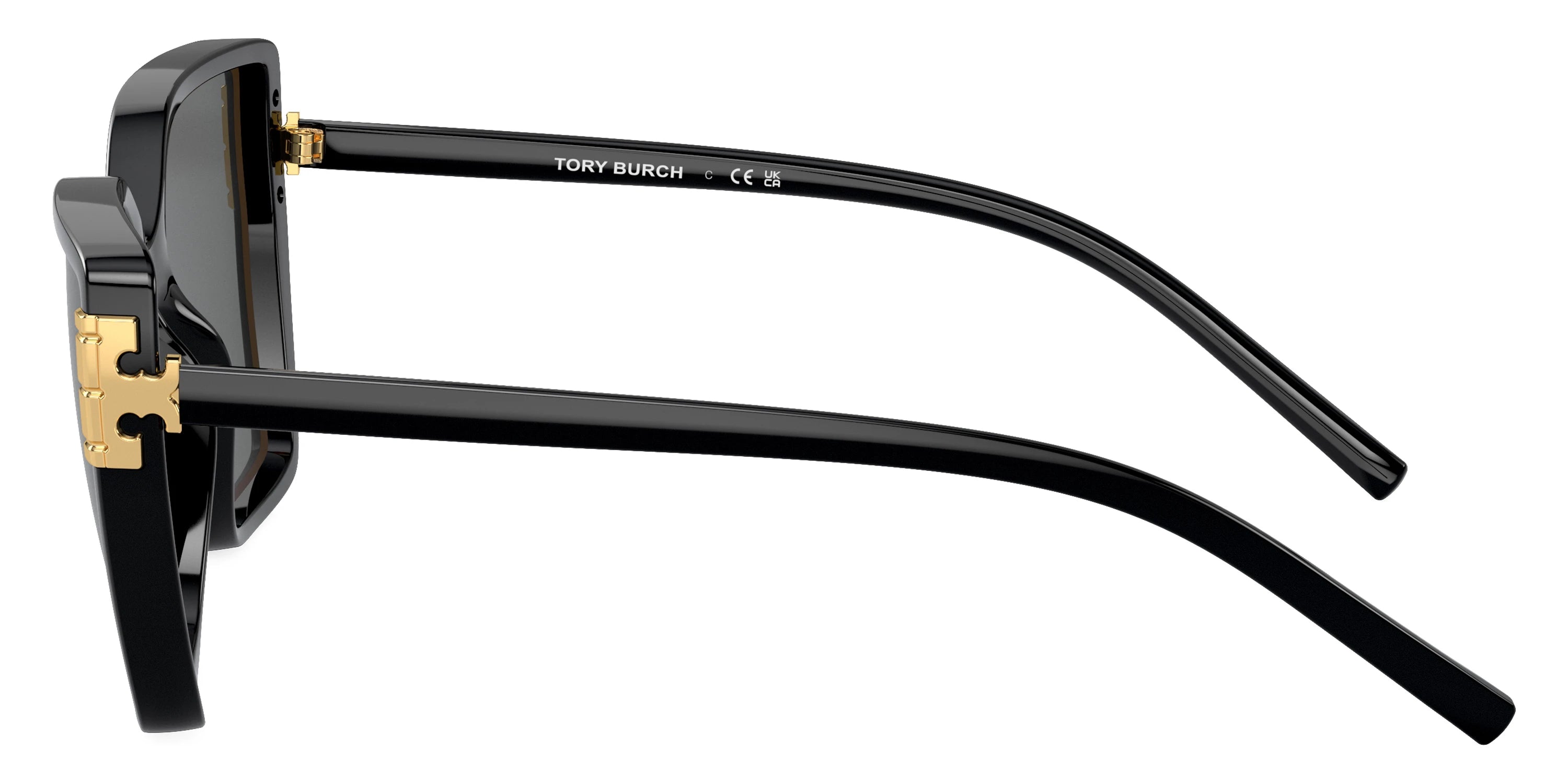 Black (196487) Sunglasses with Dark Gray lenses (Eleanor TY9076U 196487 58) by Tory Burch™. Size: 58-16-140, Shape: Square, Material: Injected.