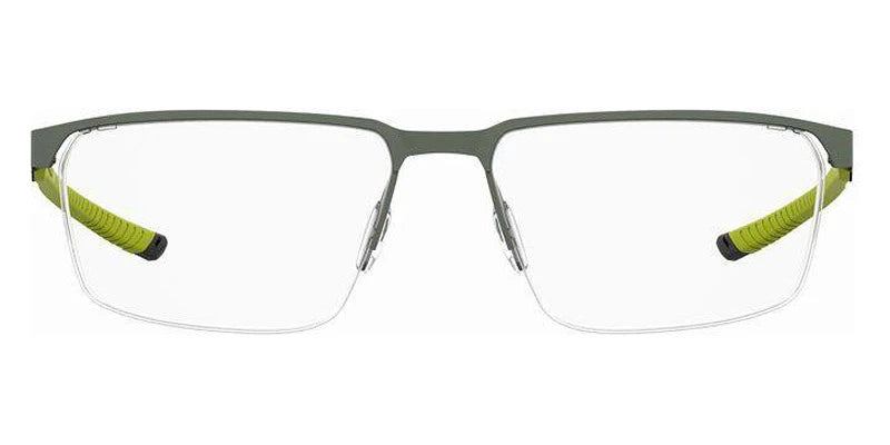 Matte Dark Ruthenium Green (00OC) Eyeglasses (UA 5049/G 00OC 57) by Under Armour™. Size: 57-16-145, Shape: Rectangle, Material: Stainless Steel and Rubber.