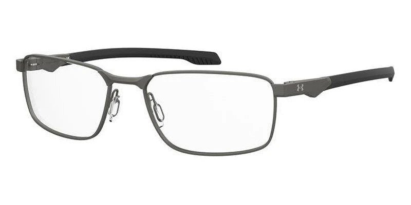 Matte Dark Ruthenium Black (05MO) Eyeglasses (UA 5063/G 05MO 55) by Under Armour™. Size: 55-17-140, Shape: Rectangle, Material: Stainless Steel and Metal.