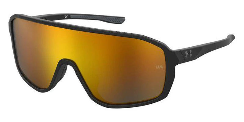 Matte Black (000350) Sunglasses with Orange Multilayer Oleophobic lenses (UA GAMEDAY/G 000350 99) by Under Armour™. Size: 99-1-130, Shape: Shield, Material: Polyamide Inj-Gril..