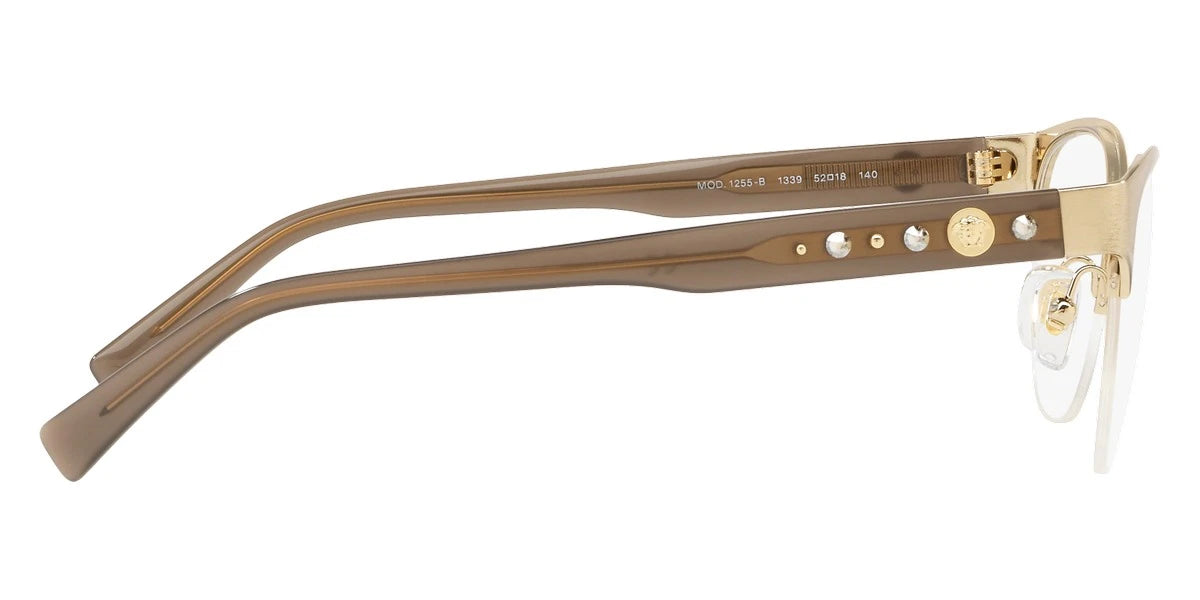 Pale Gold (1339) Eyeglasses (VE1255B 1339 52) by VERSACE™. Size: 52-18-140, Shape: Butterfly, Material: Metal and Plastic.