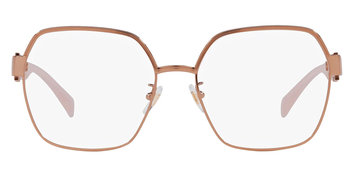 Rose Gold/Opal Pink (1412) Eyeglasses (VE1291D 1412 56) by VERSACE™. Size: 56-16-140, Shape: Square, Material: Steel.