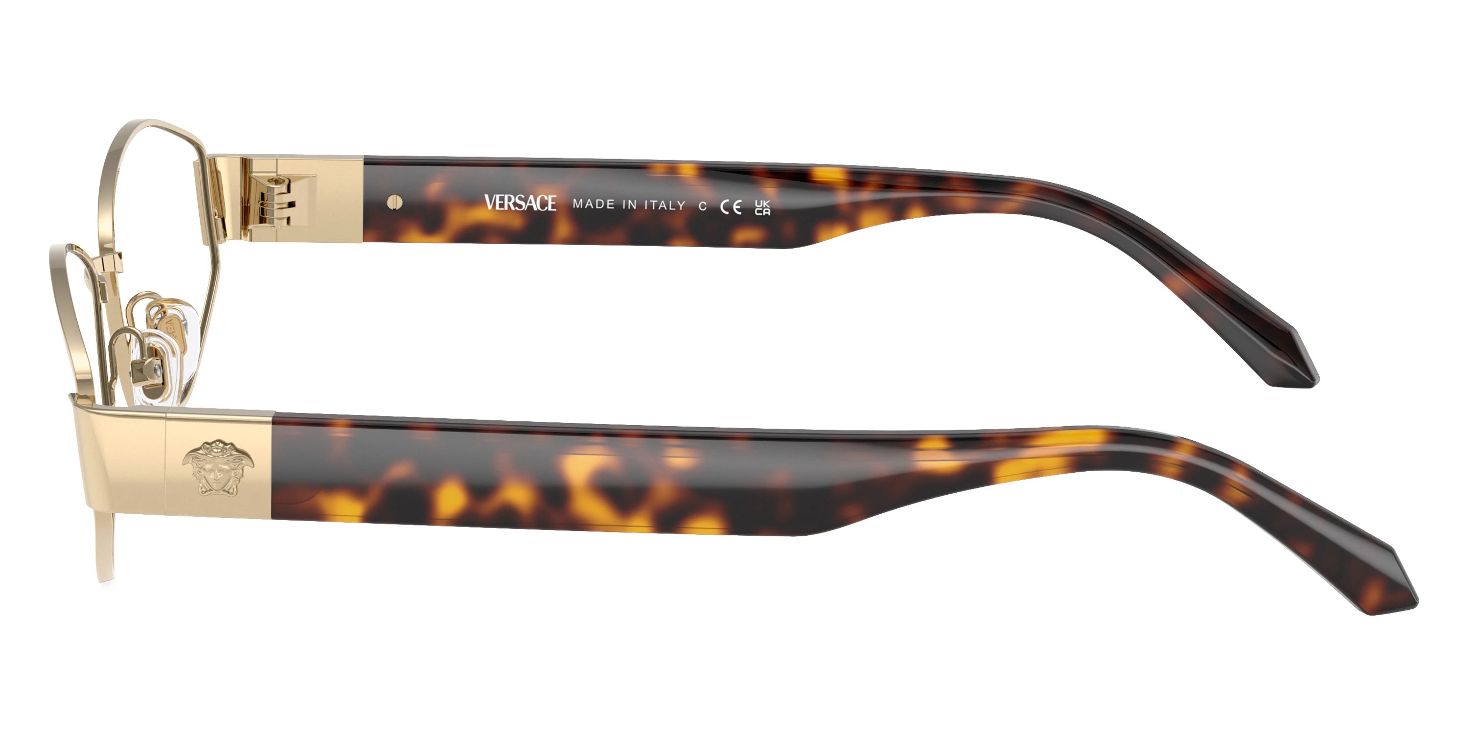 Pale Gold (1252) Eyeglasses (VE1298 1252 53) by VERSACE™. Size: 53-16-140, Shape: Irregular, Material: Metal.