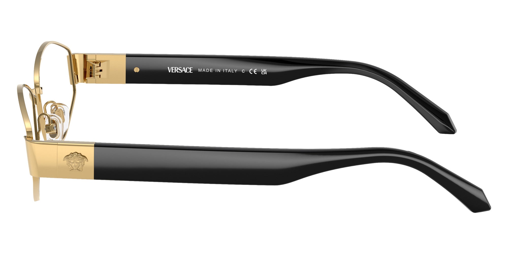 Gold (1002) Eyeglasses (VE1298 1002 55) by Versace. Size: 55-16-140, Shape: Irregular, Material: Metal.