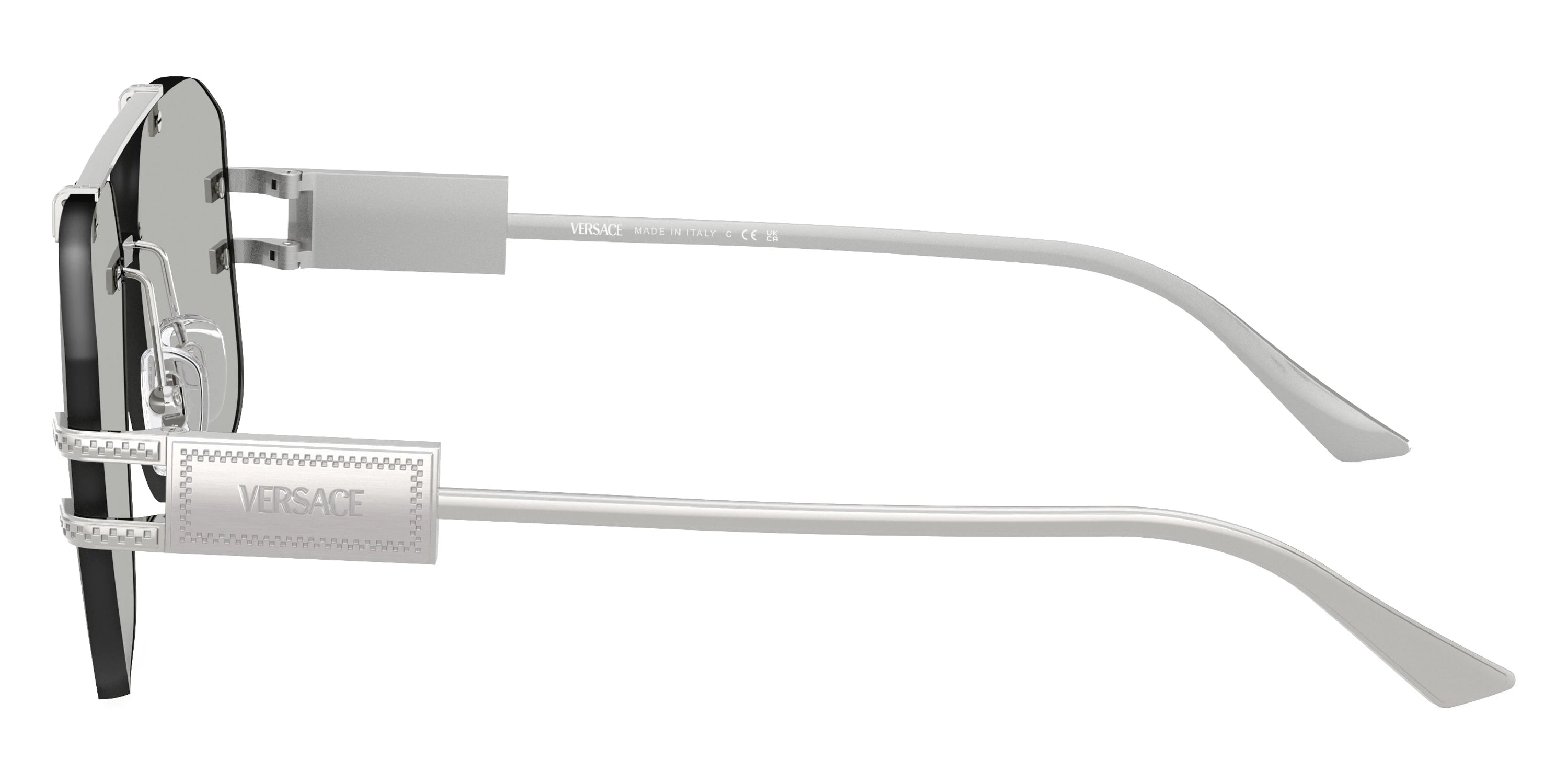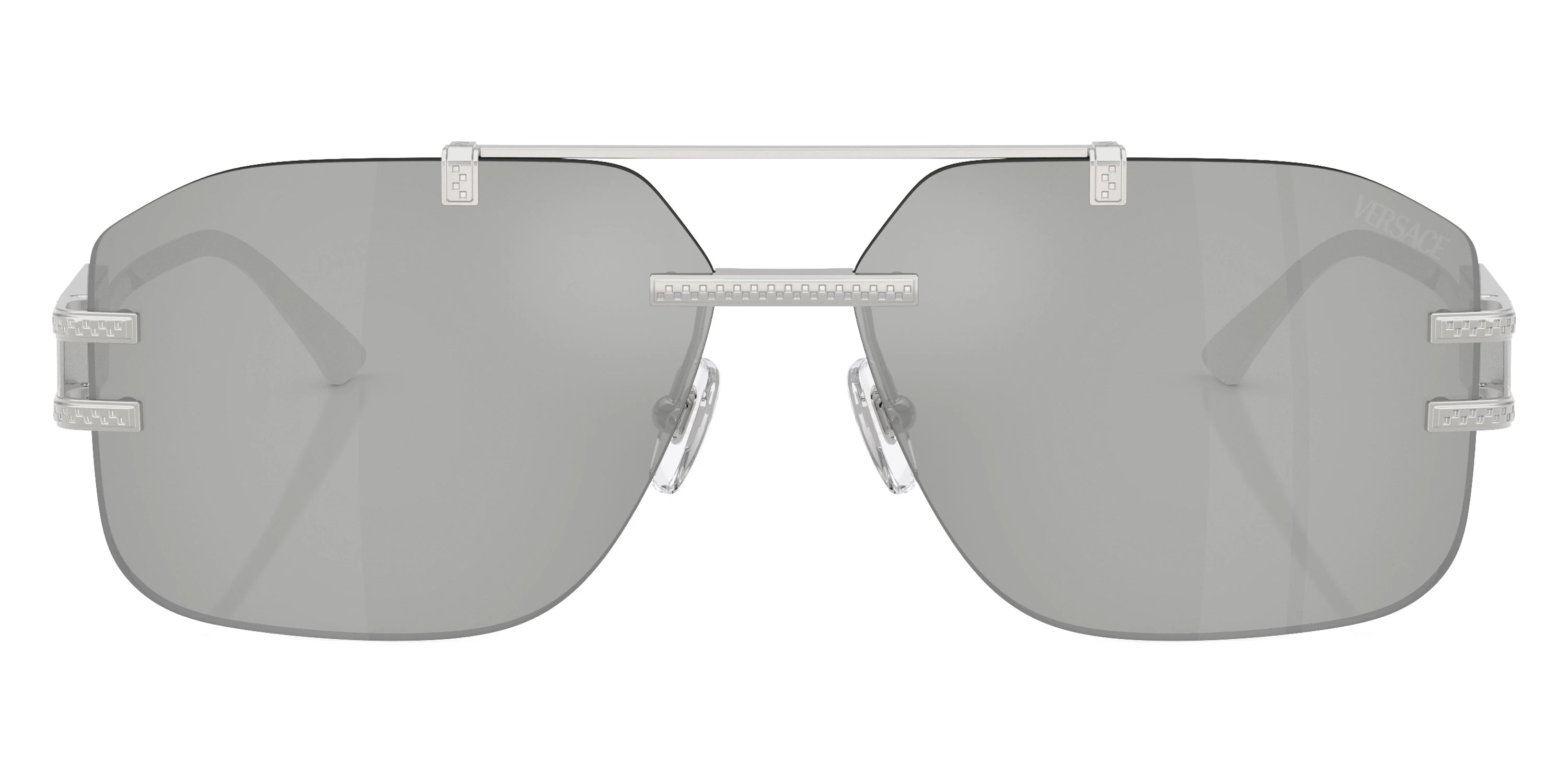Silver (10008V) Sunglasses with Clear Mirrored Silver 80 lenses (Damier VE2275 10008V 60) by VERSACE™. Size: 60-13-140, Shape: Irregular, Material: Metal.
