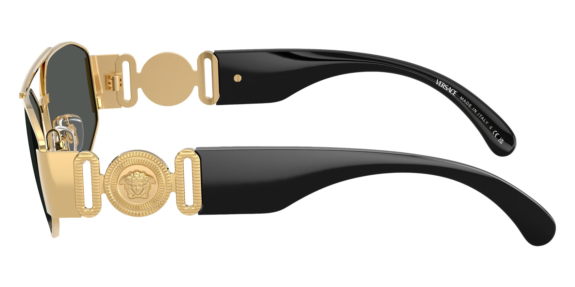 Gunmetal (100171) Sunglasses (VE2287 100171 58) by Versace. Size: 58-14-140, Shape: Irregular, Material: Metal.