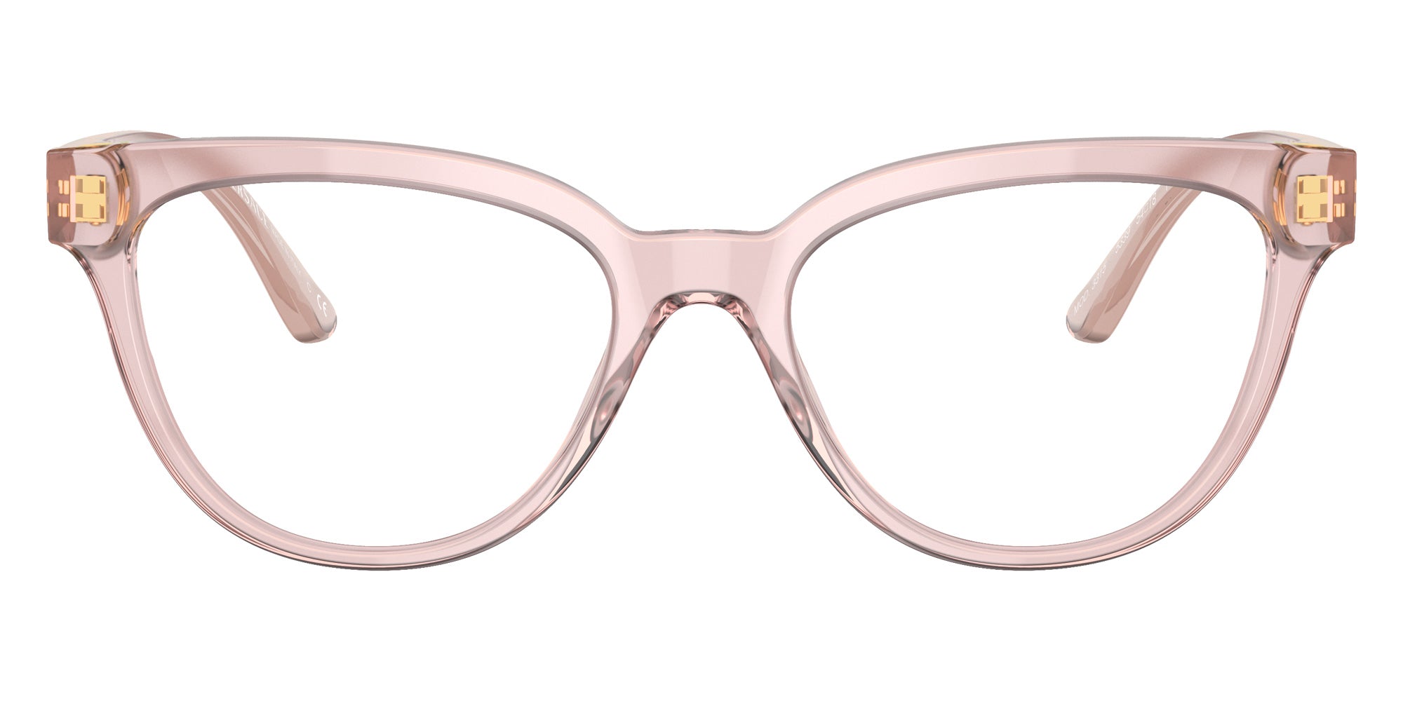 Transparent Pink (5339) Eyeglasses (VE3315 5339 54) by Versace. Size: 54-18-145, Shape: Cat-Eye, Material: Acetate and Nylon.