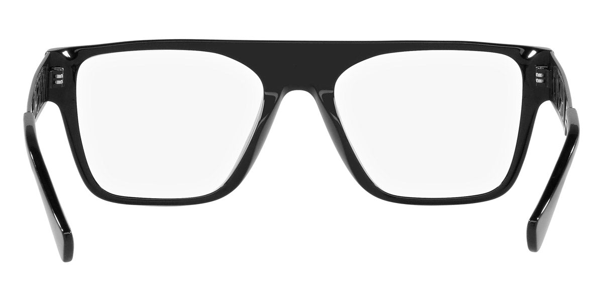 Black (5380) Eyeglasses (VE3326U 5380 55) by VERSACE™. Size: 55-19-145, Shape: Rectangle, Material: Plastic and Metal.