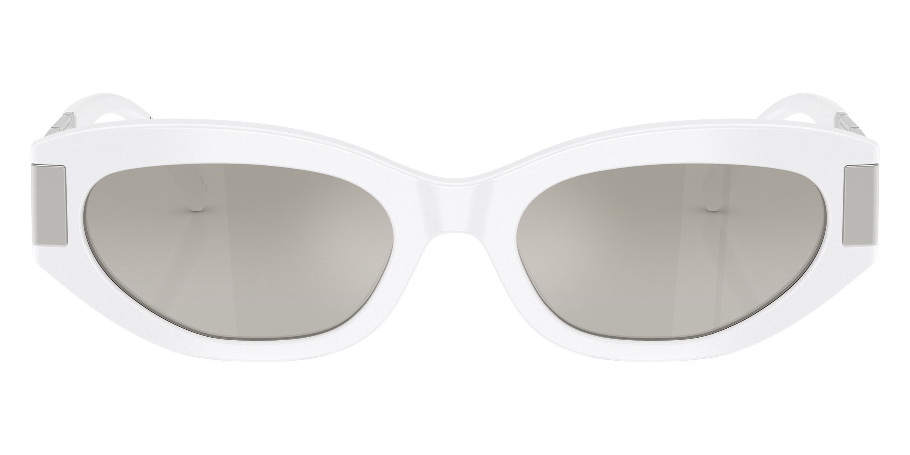 White (314/6V) Sunglasses with Gray Mirrored Gradient Silver lenses (VE4501 314/6V 54) by VERSACE™. Size: 54-19-145, Shape: Cat-Eye, Material: Acetate and Metal.