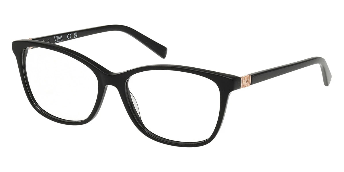 Shiny Black (001) Eyeglasses (VV50010 001 55) by Viva™. Size: 55-15-140, Shape: Square, Material: Plastic.