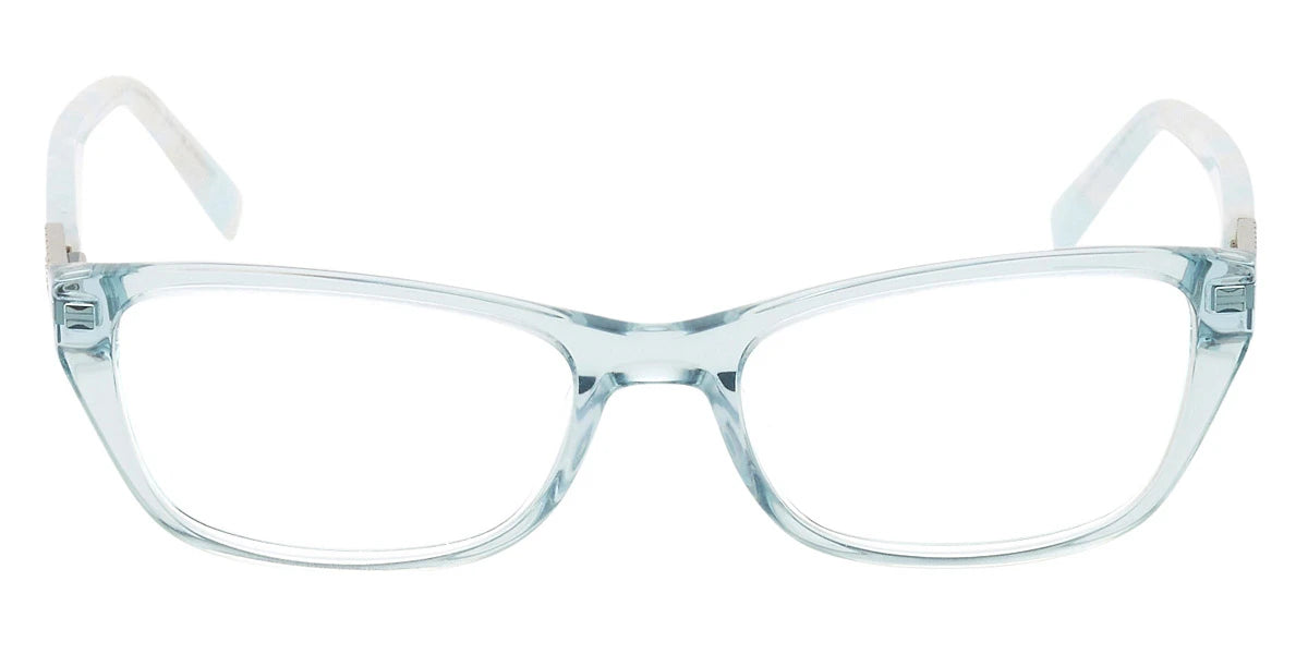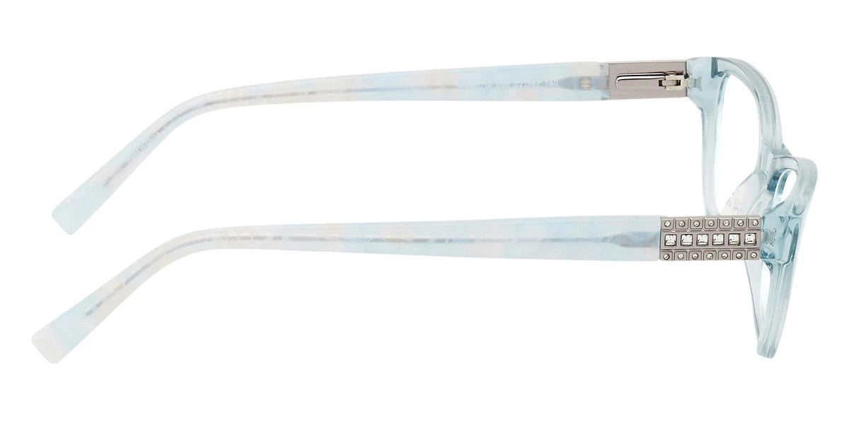 Shiny Light Blue/Blue/Pearl (090) Eyeglasses (VV50019 090 52) by Viva™. Size: 52-17-140, Shape: Cat-Eye, Material: Plastic.