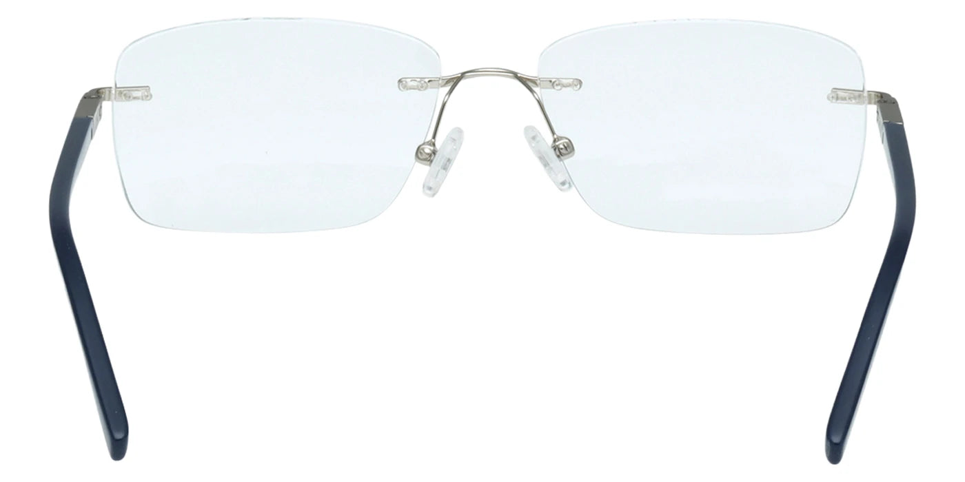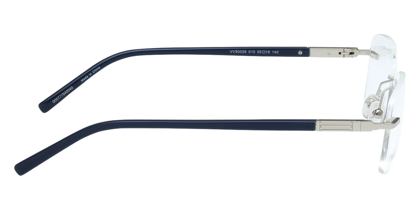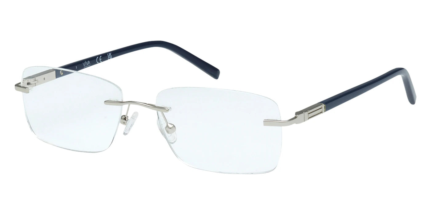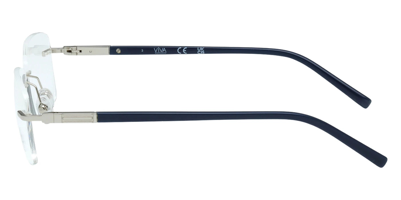 Shiny Light Ruthenium/Shiny Blue (010) Eyeglasses (VV50026 010 55) by Viva™. Size: 55-16-140, Shape: Rectangle, Material: Metal.
