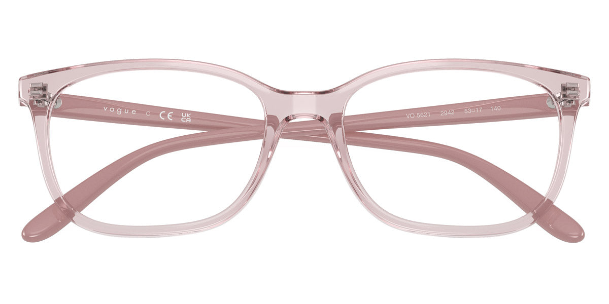 Transparent Pink/Full Antique Pink (2942) Eyeglasses (VO5621 2942 53) by vogue eyewear™. Size: 53-17-140, Shape: Square, Material: Nylon.