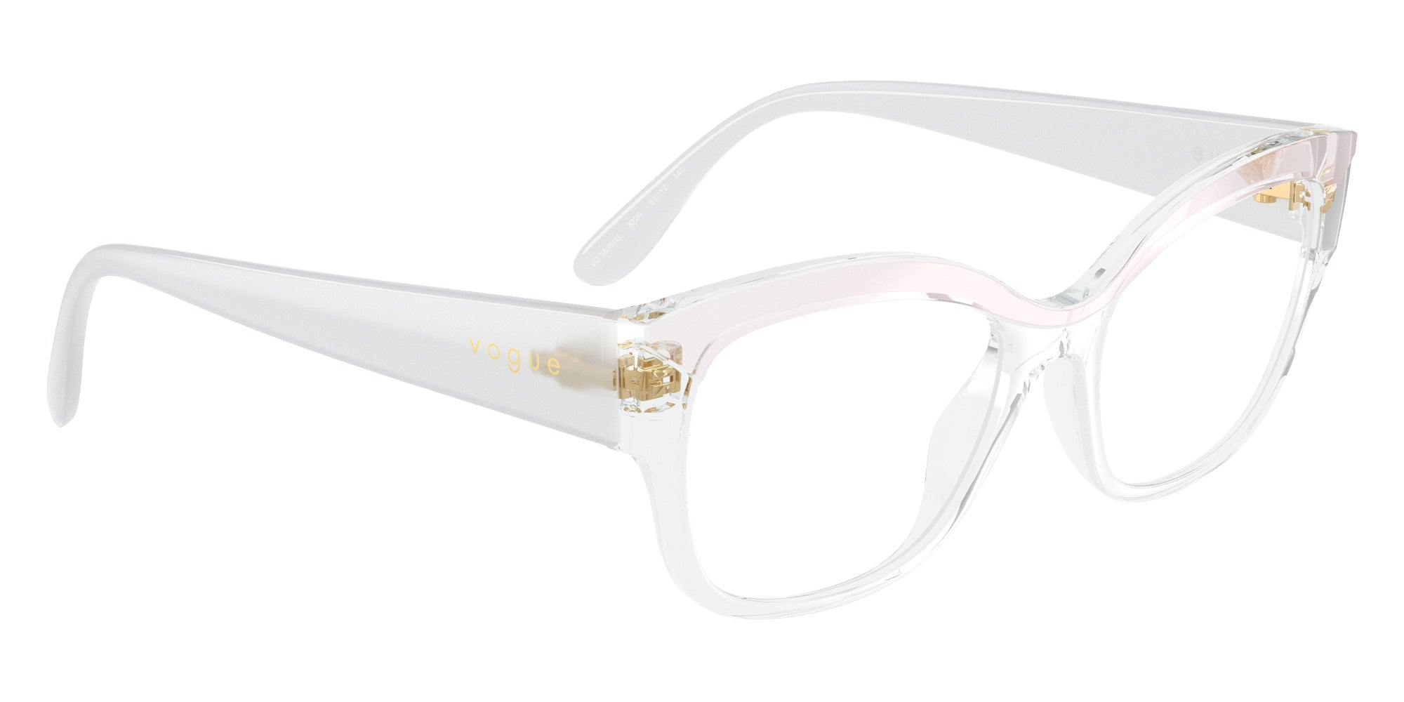 Top White/Transparent (3226) Eyeglasses (VO5635U 3226 53) by vogue eyewear. Size: 53-17-140, Shape: Square, Material: Nylon.