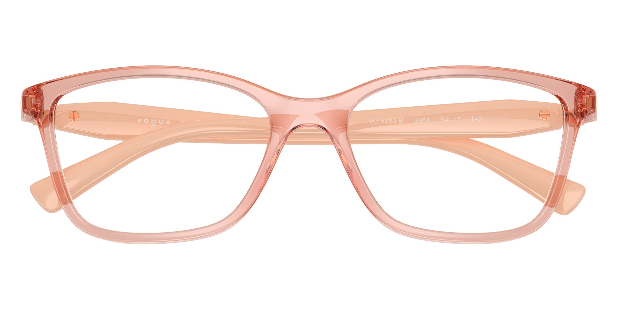 Transparent Pink (2864) Eyeglasses (VO5680B 2864 52) by vogue eyewear. Size: 52-17-140, Shape: Square, Material: Nylon and Propionate.