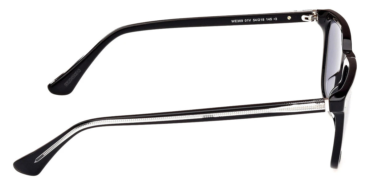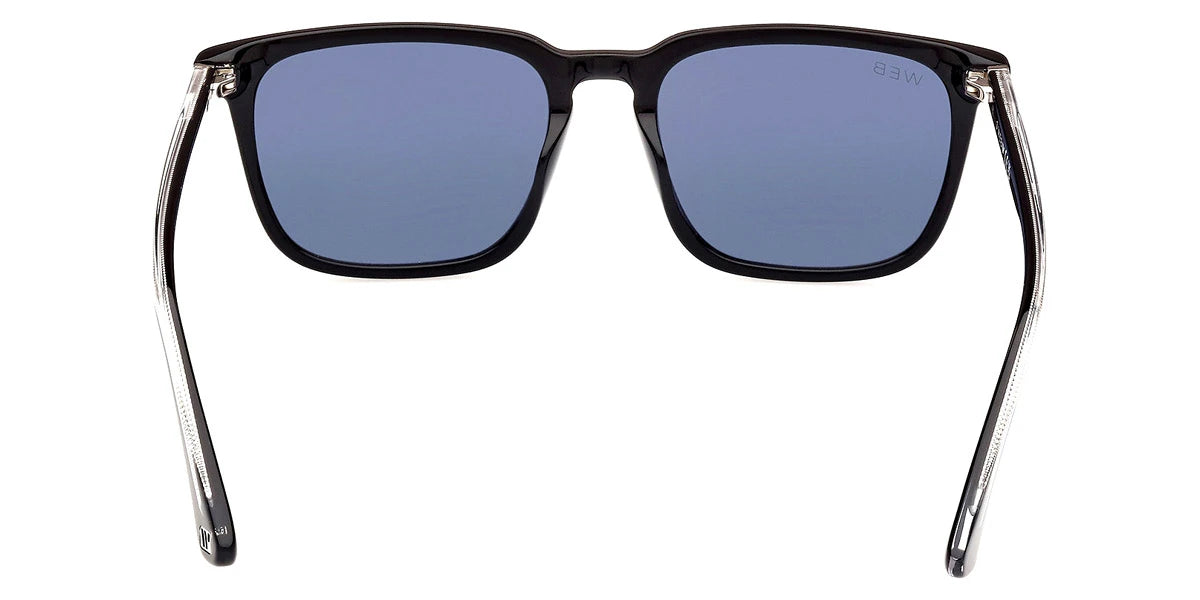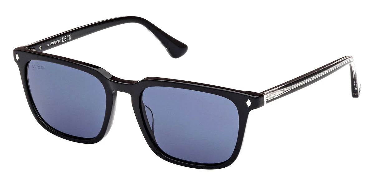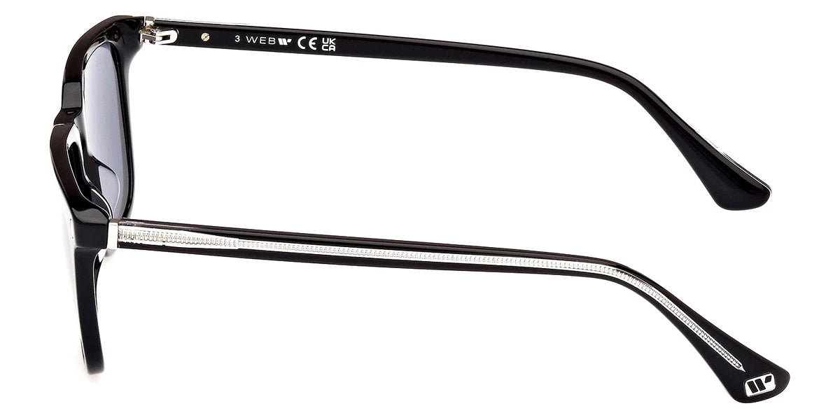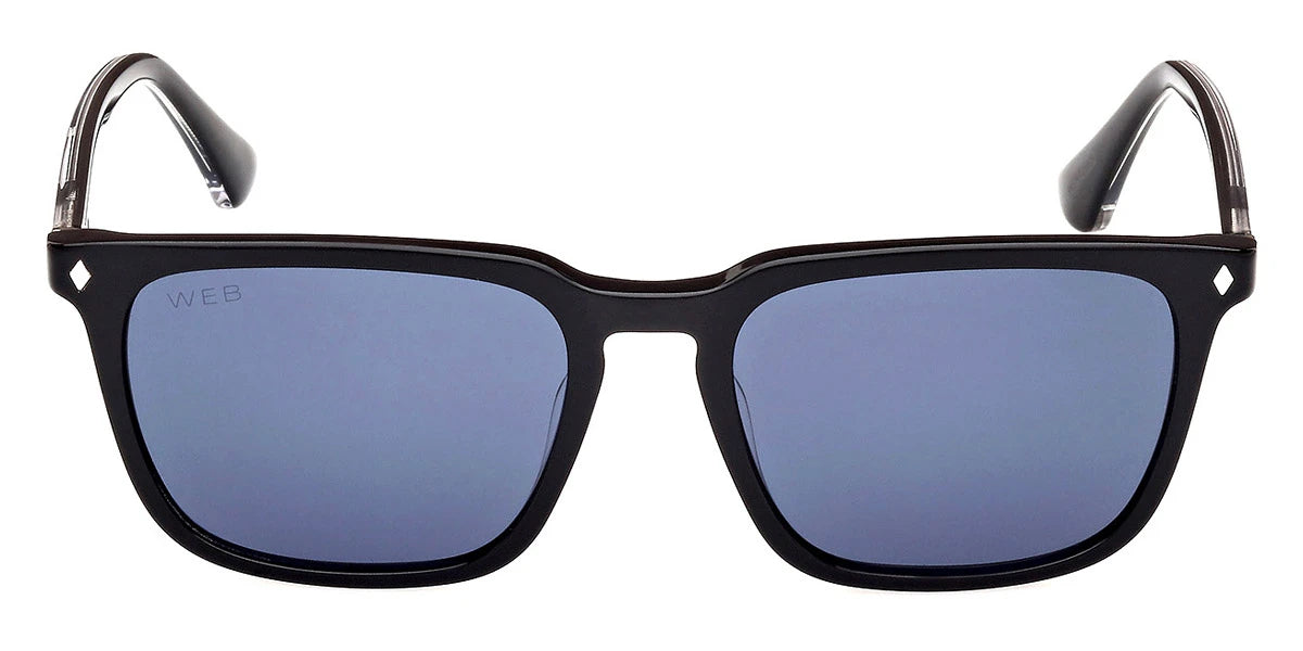 Shiny Black/Crystal (01V) Sunglasses with Blue lenses (WE0369 01V 54) by Web™. Size: 54-18-145, Shape: Square, Material: Plastic.