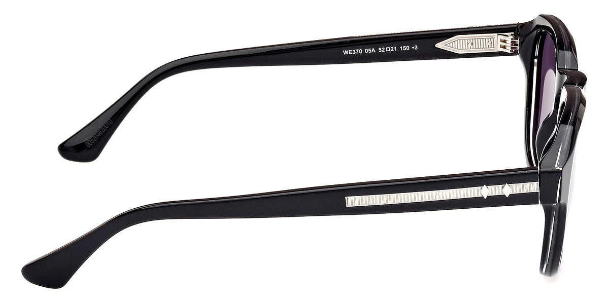 Shiny Black/Crystal (05A) Sunglasses with Smoke lenses (WE0370 05A 52) by Web™. Size: 52-21-150, Shape: Round, Material: Plastic.