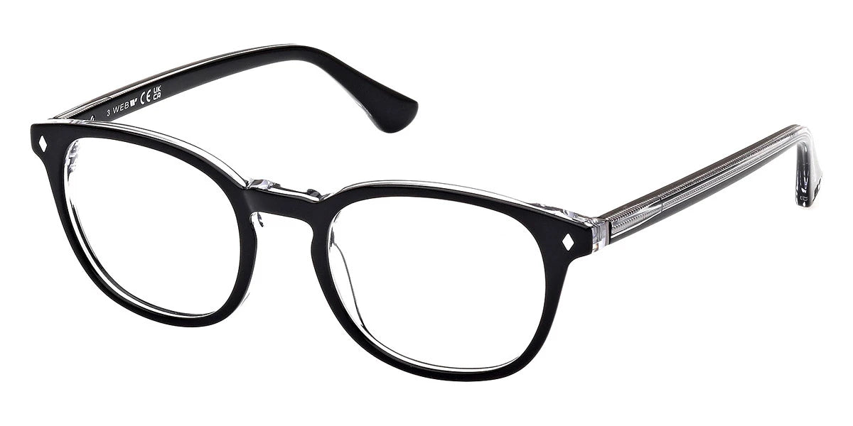 Black/Crystal/Monocolor (001) Eyeglasses (WE5441 001 50) by Web™. Size: 50-20-145, Shape: Oval, Material: Plastic.