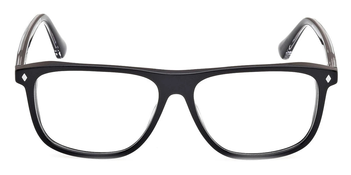 Black/Monocolor/Crystal/Monocolor (005) Eyeglasses (WE5456 005 57) by Web™. Size: 57-14-150, Shape: Rectangle, Material: Plastic.