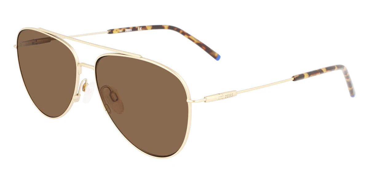 Satin Gold (717) Sunglasses (ZS22107SP 717 59) by Zeiss™. Size: 59-14-145, Shape: Aviator, Material: Titanium.